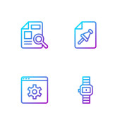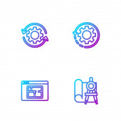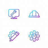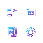 Ustaw linię śrubokręt i klucz klucz klucz, wiertarka elektryczna, Instrukcja obsługi i sprzęt monitora komputerowego. Ikony kolorów gradientu. Wektor.