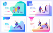 Aktywa i zobowiązania Landing Page Template Set. Tiny Characters Share Property on Rentowna i nierentowna wartość