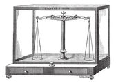 Równowaga, stosowana w badaniach fizycznych i chemicznych. Belka jest skonstruowana tak, aby połączyć lekkość z wytrzymałością i spoczywa na cienkiej krawędzi noża na płaszczyźnie agatu, rysunek linii vintage lub rysunek grawerowania.