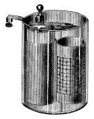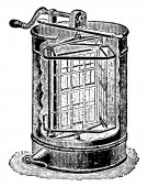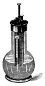 Zdjęcie "Ogniwo Leclancha zawierało roztwór przewodzący (elektrolit) chlorku amonu, katodę (terminal dodatni) węgla, depolaryzator dwutlenku manganu oraz anodę (terminal ujemny) cynku, rysunek linii vintage lub grawerowanie " może być wykorzystywane do celów osobistych i komercyjnych zgodnie z warunkami zakupionej licencji Royalty-free. Obraz jest dostępny do pobrania w jakości wysokiej rozdzielczości do 5760x3840.