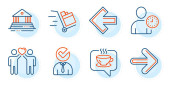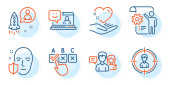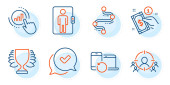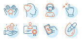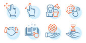 Zdjęcie "Krótkowzroczność, znaki Studenta i uścisku dłoni. Rozszerzona rzeczywistość, Złamane serce i pomoc ikony linii zestaw. Zarządzanie czasem, symbole edukacji online. Symulacja telefonu, koniec miłości. Ludzie gotowi. Wektor" może być wykorzystywane do celów osobistych i komercyjnych zgodnie z warunkami zakupionej licencji Royalty-free. Obraz jest dostępny do pobrania w jakości wysokiej rozdzielczości do 5760x3840.