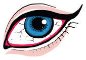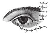 rysunek ludzkiego oka z wąskim okiem brązowy, vintage linii rysunek lub grawerowanie ilustracji.