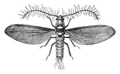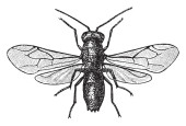 Obraz Schizoneura Langera w formie korzenia i wiatru, vintage linii rysunek lub grawerowanie ilustracji.