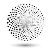Spiralne kropki w tle. Pół tonu kształty, abstrakcyjne logo godło lub element projektu dla każdego projektu. Ilustracja wektora EPS10.