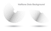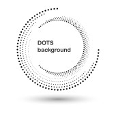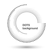 Pół tonu okrągły jako ikona lub tło. Czarna abstrakcyjna ramka wektorowa z kropkami jako logo lub emblemat. Okrągła granica odizolowana na białym tle dla Twojego projektu.