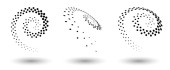 Ramka półtonowa, abstrakcyjne kropki logo emblematu projektu dla każdego projektu. Okrągła ikona granicy lub tło. Ilustracja wektora EPS10. Abstrakcyjny półtonowy wektor kropkowany z inną perspektywą