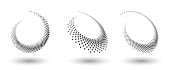Ramka półtonowa, abstrakcyjne kropki logo emblematu projektu dla każdego projektu. Okrągła ikona granicy lub tło. Ilustracja wektora EPS10. Abstrakcyjny półtonowy wektor kropkowany z inną perspektywą