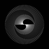futurystyczna sztuka linii. białe kółka na czarnym tle.