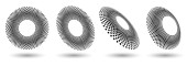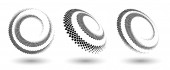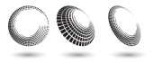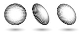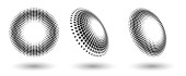 Pół tonu kształty, abstrakcyjne kropki logo godło lub element projektu dla każdego projektu. Okrągła ikona lub tło. Ilustracja wektora EPS10. Abstrakcyjny półtonowy wektor kropkowany z inną perspektywą