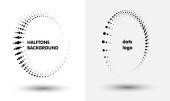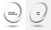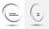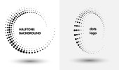 Pół tonu okrągły jako ikona lub tło. Czarna abstrakcyjna ramka wektorowa z kropkami jako logo lub emblemat. Okrągła granica odizolowana na białym tle dla Twojego projektu.