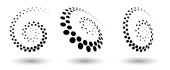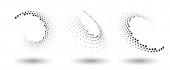 Ramka półtonowa, abstrakcyjne kropki logo emblematu projektu dla każdego projektu. Okrągła ikona granicy lub tło. Ilustracja wektora EPS10. Abstrakcyjny półtonowy wektor kropkowany z inną perspektywą