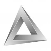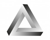Trójkąt Penrose lub trójbar Penrose, lub niemożliwy trójpasek z gradientem na czarnym tle. Niemożliwy przedmiot, niemożliwa postać lub niezdecydowana liczba.