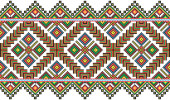 Wyhaftowany jak stary, ręcznie robiony, etniczny wzór Ukrainy. Ukraiński ręcznik z ornamentem, Rushnyk nazywa, w wektorze