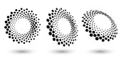 Pół tonu kształty, abstrakcyjne kropki logo godło lub element projektu dla każdego projektu. Okrągła ikona lub tło. Ilustracja wektora EPS10. Abstrakcyjny półtonowy wektor kropkowany z inną perspektywą