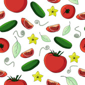 Zdjęcie "wektor bezszwowy wzór z warzywami. dobre zbiory jesienią. do projektowania papieru, menu, opakowania i tkaniny." może być wykorzystywane do celów osobistych i komercyjnych zgodnie z warunkami zakupionej licencji Royalty-free. Obraz jest dostępny do pobrania w jakości wysokiej rozdzielczości do 5760x3840.