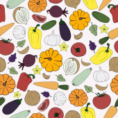 wektor bezszwowy wzór z warzywami. dobre zbiory jesienią. do projektowania papieru, menu, opakowania i tkaniny.