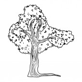 ilustracja wektor, izolować, stylizowany obraz drzewa, kolorowanki, czarny i biały wzór