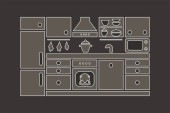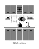 Zestaw ikon mebli kuchennych. Sylwetka wektor izolowane ilustracja w odcieniach szarości.