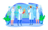 Mały charakter samiec lekarz badania nerek, linia personel medyczny badania problemu ludzkiego organizmu izolowane na białym, płaski wektor ilustracji.