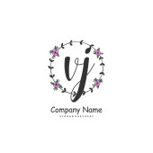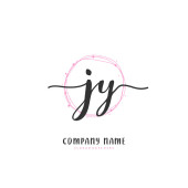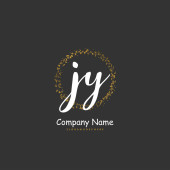 J Y JY Wstępny projekt pisma ręcznego i logo podpisu z okręgiem. Piękny projekt ręcznie pisane logo mody, zespołu, ślubu, luksusowe logo.