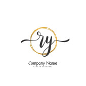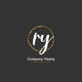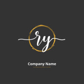R Y RY Początkowy projekt pisma i logo podpisu z okręgiem. Piękny projekt ręcznie pisane logo mody, zespołu, ślubu, luksusowe logo.