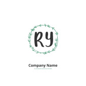 R Y RY Początkowy projekt pisma i logo podpisu z okręgiem. Piękny projekt ręcznie pisane logo mody, zespołu, ślubu, luksusowe logo.