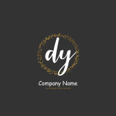 D Y DY Wstępny projekt pisma i logo podpisu z okręgiem. Piękny projekt ręcznie pisane logo mody, zespołu, ślubu, luksusowe logo.