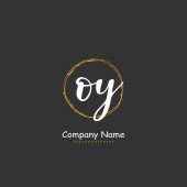 O Y OY Początkowy projekt pisma ręcznego i logo podpisu z okręgiem. Piękny projekt ręcznie pisane logo mody, zespołu, ślubu, luksusowe logo.