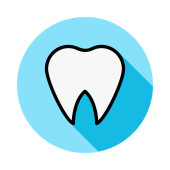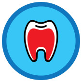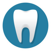 ikona zęba w niebieskim kole, izolowane na białym tle