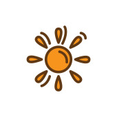 ikona słońca, ilustracja wektora. płaski styl projektowania