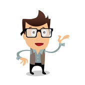 wektor ilustracja człowieka w czerwonej koszuli z brodą i okularami.