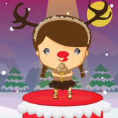 Boże Narodzenie tło projekt z kreskówki Santa dziewczyna w tradycyjnym stroju