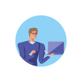 płaski projekt biznesmen z długim cieniem ikona wektor ilustracja