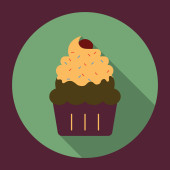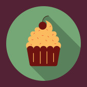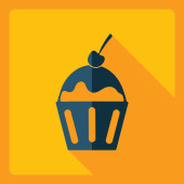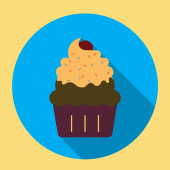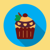 ikona babeczka w płaskim stylu izolowane na czerwonym tle. ciasta i słodycze