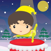 szczęśliwa kartka świąteczna z bałwanem i prezentem