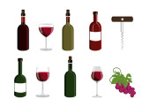 prosty stylizowany baner z ikonami wina, ilustracja wektora