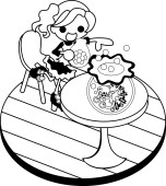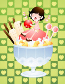 Ilustracja dziewczyny w różowej sukience z szklanką wody