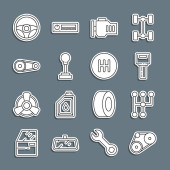 zestaw wektorowy płaskich ikon części samochodowych i konserwacji