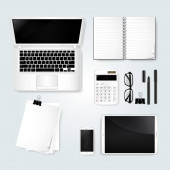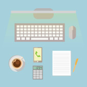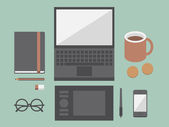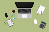 biurko z laptopem, kawą i zapasami. ilustracja wektora
