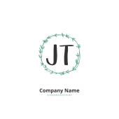 J T JT Wstępny projekt pisma i logo podpisu z okręgiem. Piękny projekt ręcznie pisane logo mody, zespołu, ślubu, luksusowe logo.