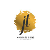 J T JT Wstępny projekt pisma i logo podpisu z okręgiem. Piękny projekt ręcznie pisane logo mody, zespołu, ślubu, luksusowe logo.