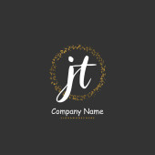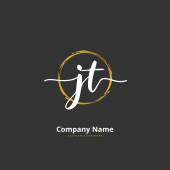 J T JT Wstępny projekt pisma i logo podpisu z okręgiem. Piękny projekt ręcznie pisane logo mody, zespołu, ślubu, luksusowe logo.