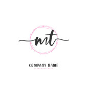 N T NT Wstępne pismo i projekt logo podpisu z okręgiem. Piękny projekt ręcznie pisane logo mody, zespołu, ślubu, luksusowe logo.
