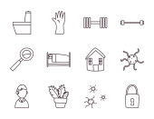 Zdrowe i sportowe linii styl ikona zestaw wektor projekt