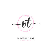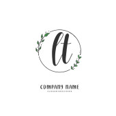 L T LT Wstępny projekt pisma ręcznego i logo podpisu z okręgiem. Piękny projekt ręcznie pisane logo mody, zespołu, ślubu, luksusowe logo.