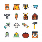 Linia rolnicza i wypełnić styl ikona zestaw wektor projekt