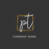 P T PT Wstępny projekt pisma i logo podpisu z okręgiem. Piękny projekt ręcznie pisane logo mody, zespołu, ślubu, luksusowe logo.