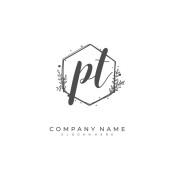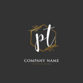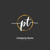 P T PT Wstępny projekt pisma i logo podpisu z okręgiem. Piękny projekt ręcznie pisane logo mody, zespołu, ślubu, luksusowe logo.