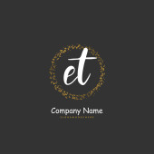 E T ET Wstępny projekt pisma i logo podpisu z okręgiem. Piękny projekt ręcznie pisane logo mody, zespołu, ślubu, luksusowe logo.