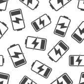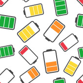 Ikona ładowania akumulatora w płaskim stylu. Ilustracja wektora poziomu mocy na białym, izolowanym tle. Koncepcja biznesowa bezszwowego wzorca akumulatora litu.